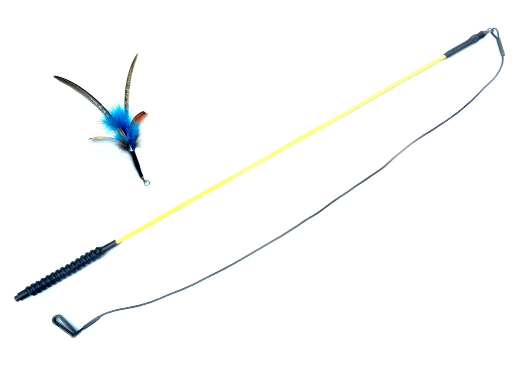 The feather prey end is interchangeable. There are currently over 70 other different prey attachments that simply clip on to the rod. (Available separately) to provide a large variety of play and long term interest!